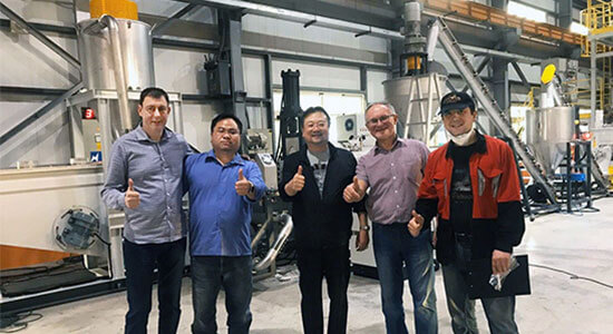 The customer is a large-scale PVC compounds materials manufacturer in Russia. They want to expend production lines due to the fast-growing business. In order to maximize the work efficiency of their limited human resources, we were requested to design a completed automatic extrusion line from the upstream to the downstream processes including material preparation, mixture, transportation, feeding, extrusion, pelletizing, cooling, screening, and storage. The purpose was to help them operate this 23-meters-long, 6-meter-high underwater pelletizing line with least manpower.