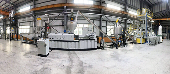 The 23-meters-long, 6-meter-high production line combines upstream and downstream auxiliary equipment. The customized extruder screw is designed based on customer’s material formulation, which ensures the outstanding mixing performances of the extrusion system. We are so glad that the stable and high-efficiency automatic PVC extrusion line brings our old friends extraordinary experiences on PVC pelletizing.